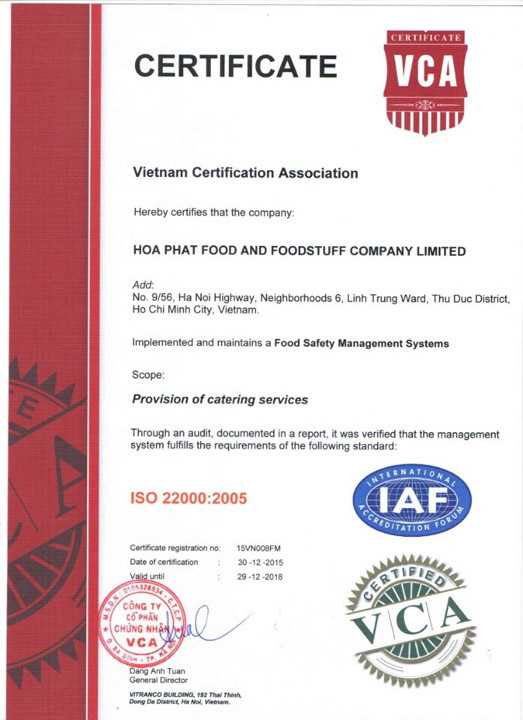 Our diverse menus are developed in consultation with nutrition specialists to create well-balanced meal portions that ensure food safety, satisfy taste preferences, and remain cost-effective for diners. Each dish provided by Hoa Phat is insured by Bao Viet Insurance with coverage of up to VND 3 billion.