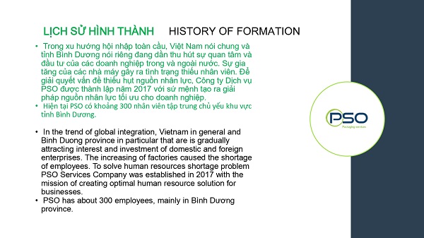PSO Services Company Limited was established in 2017, but has extensive experience in the fields of packaging processing, cargo loading and unloading, as well as reputable house and office moving services in Binh Duong and neighboring provinces.