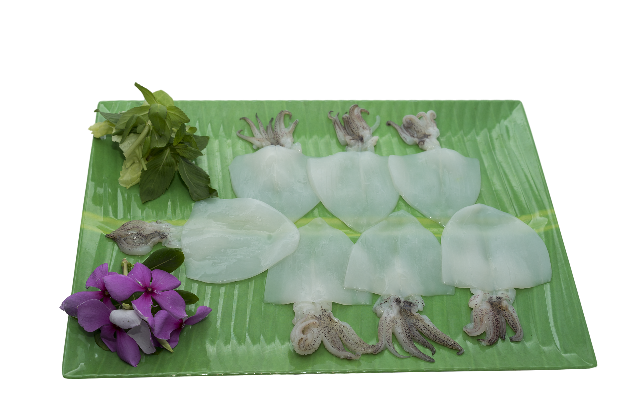 - Sushi-grade cuttlefish (halved, third-cut, shredded)