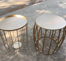 ♦ Iron tables: Birdcage-style tables, tray-top tables with hanging hooks, four-leg tables, single pedestal tables, three-section tables, round tables, etc.