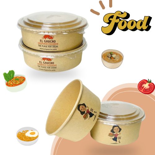 + Plastic lids, paper lids: Biodegradable packaging, sugarcane bagasse food packaging, and complementary utensils