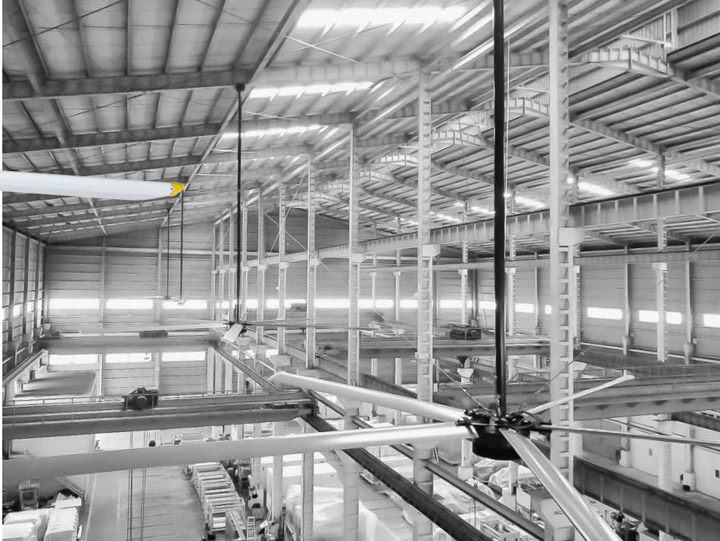 − Custom-size industrial fans: 2m, 3m, 4.2m, 5.5m, 6.1m, 7.3m, etc.