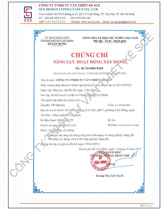 COMPANY NAME: SCE Construction Contractor - SCE Design Consultancy Co., Ltd