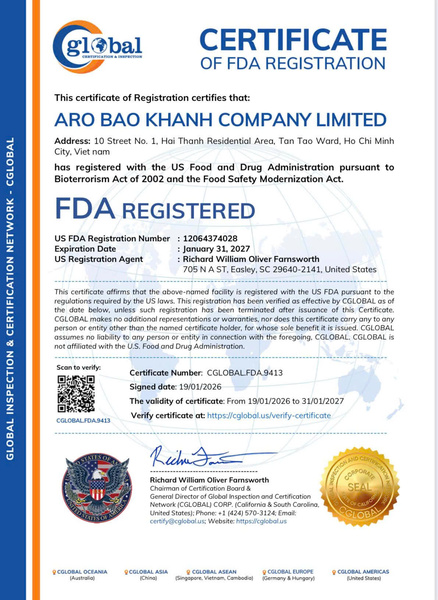 ✔️ Food Safety Certificate No. 163/2020/NNPTNT-LAN.