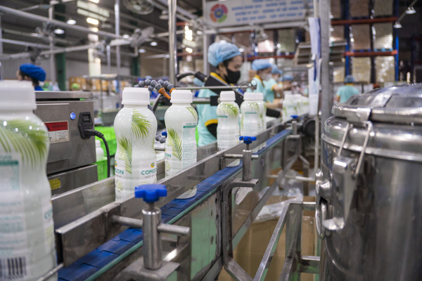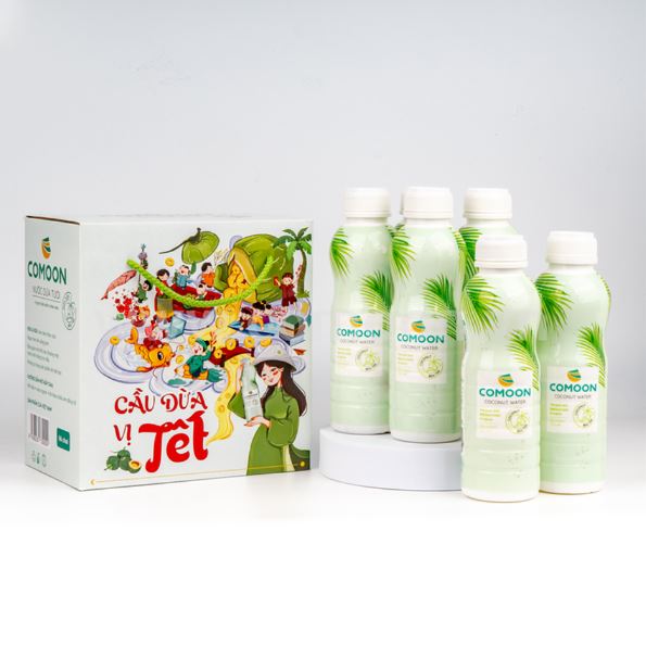 The flagship product line featuring pure fresh coconut water from Ben Tre - the coconut water capital. Products are packaged in various formats to meet ready-to-drink needs, including single bottles, packs (3, 6, 12 bottles), and 24-bottle cartons for distributors.