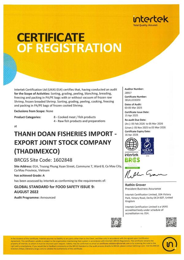 With more than 20 years of experience in the processing of high-quality, hygienic seafood products compliant with international standards such as HACCP, ISO, BRC, ASC, BAP, and Organic certifications, Nam My Company is confident in our ability to supply our valued customers with products of superior quality, while ensuring fast, reliable, and on-time delivery.