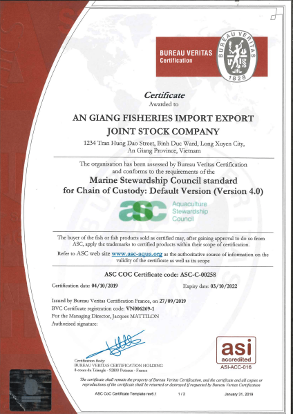 AGIFISH is a member of the Vietnam Chamber of Commerce and Industry (VCCI), the Vietnam Association of Seafood Exporters and Producers (VASEP), the Vietnam Pangasius Association (VPA), and the An Giang Fisheries and Aquaculture Association (AFA).