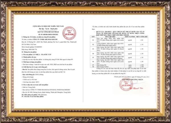 Certificate of food safety