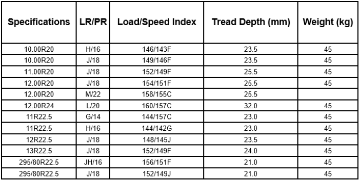 Technical specifications of the Goodride CB919 construction tire