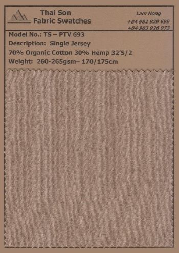 Hemp Fabric from Thai Son S.P Knit Fabric is a natural and sustainable choice crafted from biodegradable hemp fibers that have a low environmental impact. The fabric is durable and strong, yet soft and breathable, delivering long-lasting comfort.