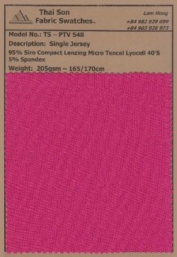 Lyocell Fabric from Thai Son S.P Knit Fabric is a sustainable material made from regenerated wood fibers through an eco-friendly production process. The fabric is soft, smooth, breathable, and highly moisture-absorbent, providing a comfortable wearing experience.