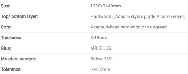 Plywood core veneer without face and back is made from ed hardwood or mixed wood veneers, bonded with strong adhesive under high pressure to ensure good strength, stability, and bonding quality.