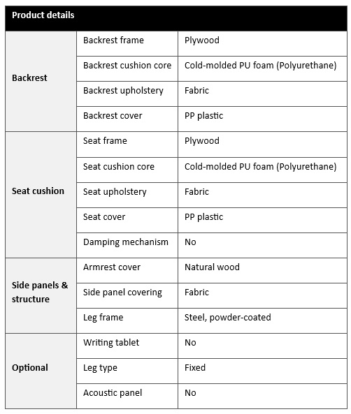 Technical specifications: Auditorium chair EVO6602